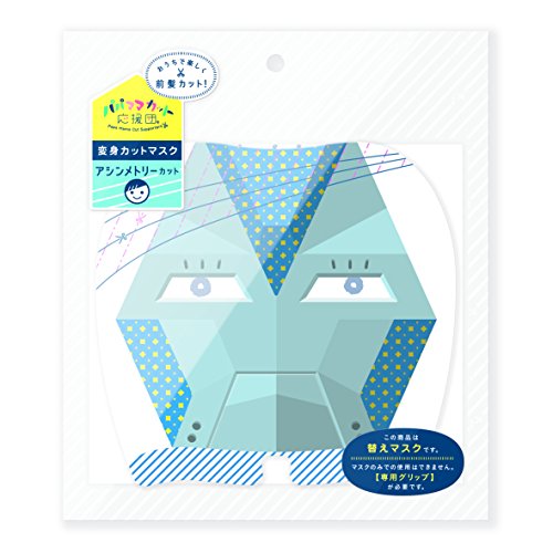 既にスターターキットや変身カットマスク本体を持っている人に向けた、着せ替えマスクです。なりたい前髪デザインに合わせて買い足すことで、さまざまな前髪スタイルに挑戦できます。 できあがりの前髪イメージは、ストレートカット・ラウンドカット・アシンメトリーカットの3種類! 本品は、『アシンメトリーカットシリーズ グリーンゴーグルマスク』となります。