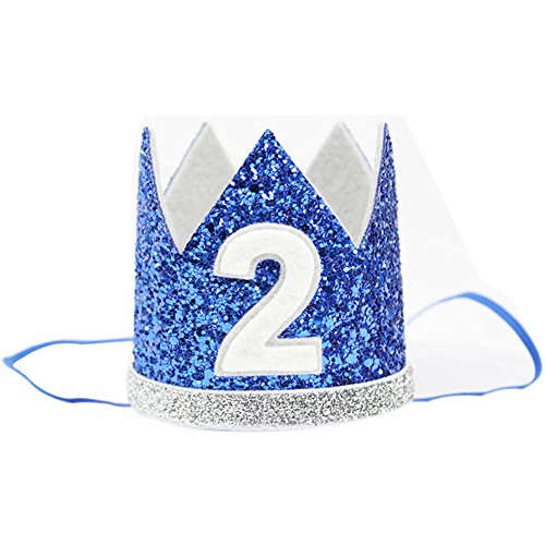 男の子バースデークラウン ベビー王冠 赤ちゃん キッズ可愛いプリンセスクラウン ゴムバンド 2歳シール付け 記念写真 撮影 誕生日プレゼント セレモニー 結婚式 お宮参り 退院 ブルー