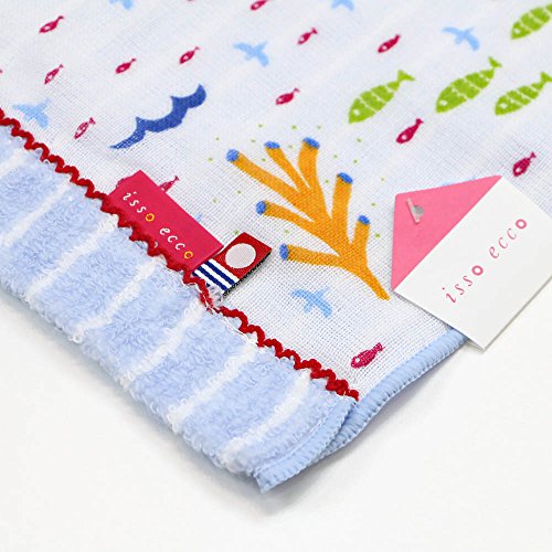 - 海の生き物たちが楽しく遊んでいるガーゼタオルです。 七福タオル isso ecco(イッソエッコ)