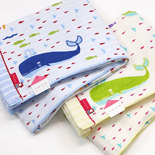 - 表はガーゼでサラサラ、裏は無撚糸パイル地でとても柔らかく、キッズ・ジュニア用にお使いいただけるかわいいシリーズです。のびのびと泳ぐクジラと、海の仲間で彩ったカラフルな色使いが人気。夏のプールに是非!