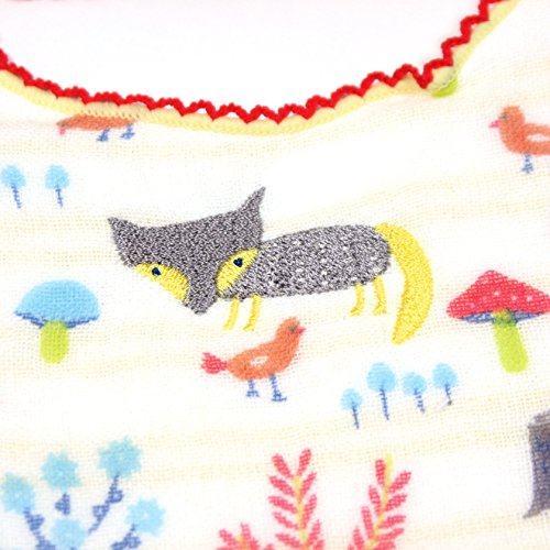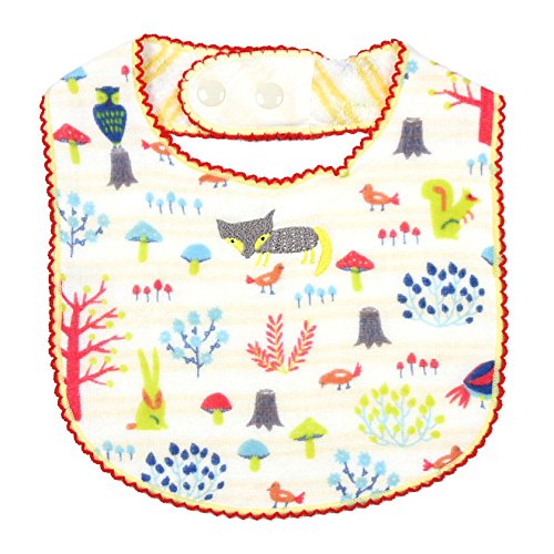 花やきのこ、森の動物たちをモチーフにしたおとぎ話のような世界をモチーフにした『もり』シリーズのベビースタイ。 優しい色使いと手書き風とイラストで、思わず心がほっこり。裏のボーダー柄が、表のガーゼ面に薄く透けてかわいさをプラスします。 柄のある表側はサラサラのガーゼ生地、裏は無撚糸パイルでとても柔らかく、お子様のデリケートな肌にも安心してお使い頂けます。