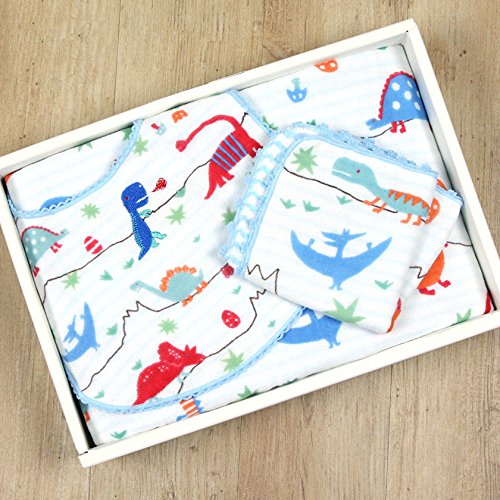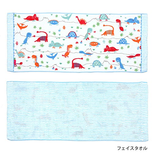 今治タオル きょうりゅう ベビーギフト isso ecco 化粧箱 手提げ袋 ラッピング込 (フェイスタオルセット, ブルー)