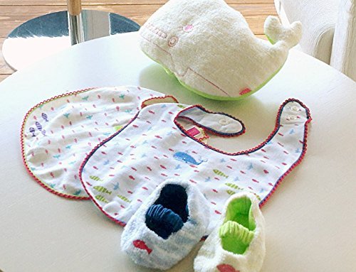 表はさらさらのガーゼ生地、裏は肌触りの良いパイル地。お洗濯しても乾きやすく、吸水性も抜群の今治タオル認定スタイです。ボタンは2段階ですので首周りの調整も便利です。かわいい・使いやすい便利なよだれかけ、お祝いにも喜ばれます。