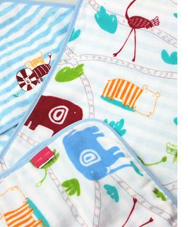 アニマルおくるみ(isso ecco) 赤ちゃんをくるっと巻いてあげられるおくるみ。動物たちのキュートなデザインが人気のシリーズです。 吸水性の良いガーゼ地で、赤ちゃんが汗をかいてもすぐ吸い取ってくれます。肌触りも良く、お洗濯しても乾きやすい便利さで、出産のお祝いにも喜ばれます。