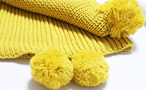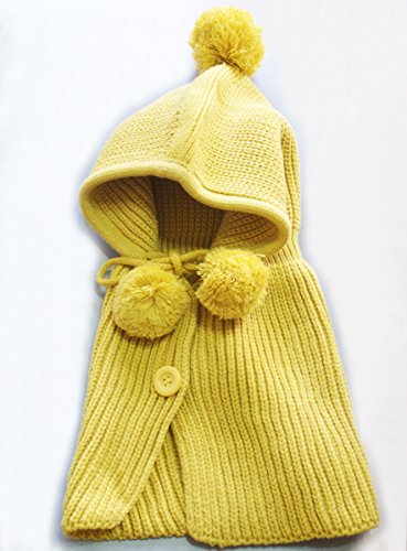 ニット帽 ベビー 赤ちゃん キッズ 用 ケープ ボンボン付き (黄)