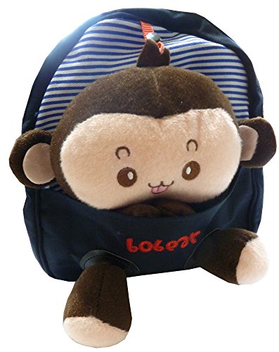 赤ちゃん こども用 リュックサック キッズ アニマル バック バック サル モンキー ぬいぐるみ 付 (ブラック)