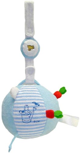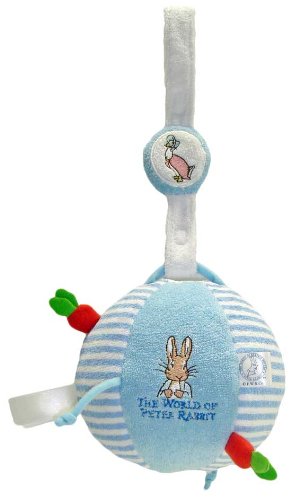 ピーターラビットの布製知育玩具です。鈴やフィルムが入っているのでリンリンカサカサ音がします。ベビーカー用のベルト付きです。