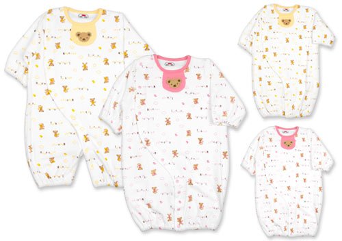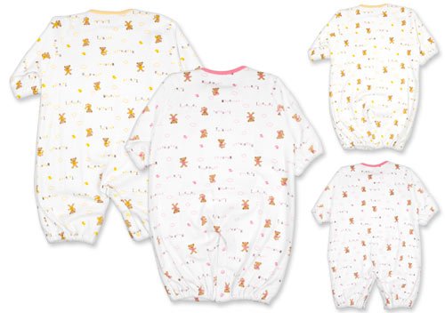 春秋物 【BearBox】 ベアボックス 綿100% クマさん柄 アップリケ付 コンビドレス カバーオール ロンパース 50-60cm クリーム