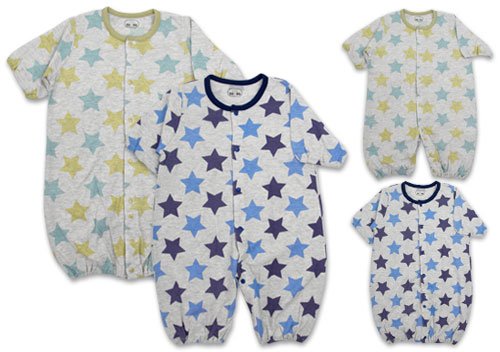 夏物 【BearBox】 ベアボックス 綿100% 星柄 コンビドレス カバーオール ロンパース 50-60cm ネイビー