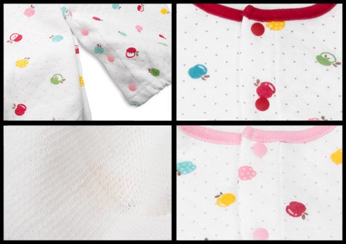 冬物 【日本製】 【BearBox】 ベアボックス りんご&ドット柄 コンビドレス カバーオール ロンパース 50-60cm ピンク衿