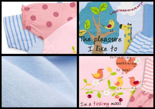 商品説明:ベアボックスの可愛らしい小鳥さんプリント入りT型半そでパジャマです