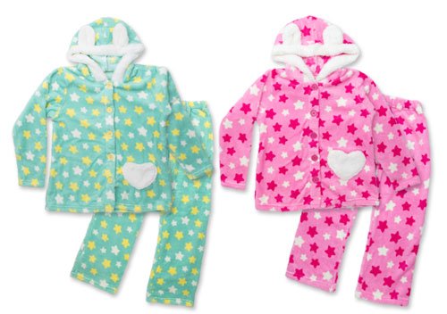 【BearBox】 ベアボックス うさぎ 耳付フード 星柄 セットアップ 長そで 前開きルームウェア 140cm ピンク