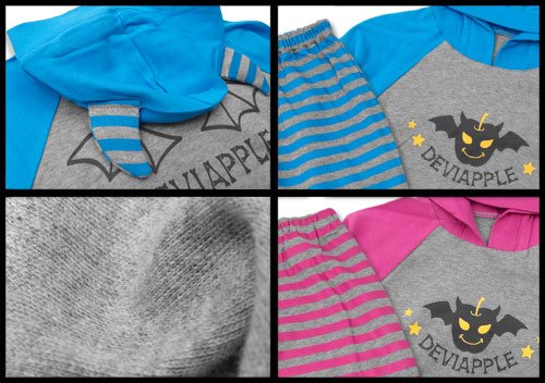 商品説明:ベアボックスからツノ付フードで可愛いデビルに変身☆セットアップのルームウェアです