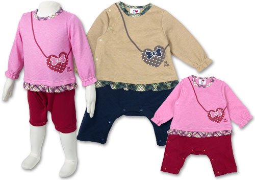 商品説明:アイラブパパ&ママのセットアップ風切り替えカバーオールです 2層の生地の間に中わたをはさんで作られている、ふんわりと柔らかな厚みのニットキルト使用 右肩から脇とおまたのスナップで着脱もラクラク まるでポシェットをさげているようなだまし絵プリントが可愛い。お袖口はゴム入りです。切り替え裾フリルと首まわりのチェック生地もかわいいね お色はパパベージュ、ママピンクの2色展開です