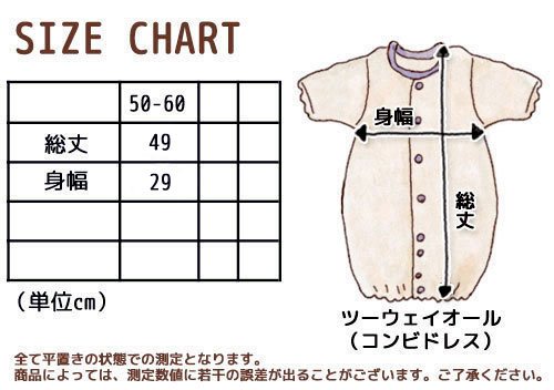 商品説明:ベアボックスよりピュアなベビーちゃんにぴったりの品良くかわいい胸元刺繍入り、日本製前開きコンビドレスです