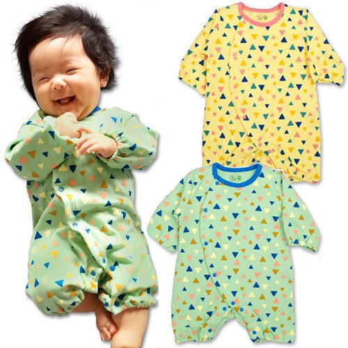 春秋物 【BearBox】 ベアボックス 綿100% スムス綿 さんかく柄 ちびオール カバーオール ロンパース 70cm クリーム