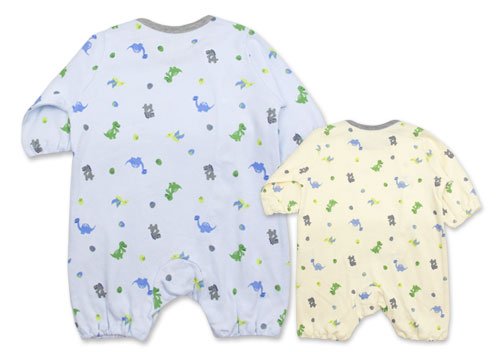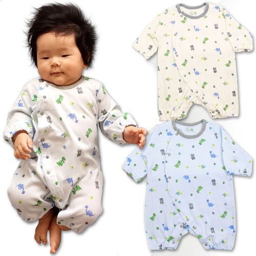 春秋物 【BearBox】 ベアボックス 綿100% スムス綿 恐竜柄 ちびオール フィットオール カバーオール ロンパース 60cm アイボリー