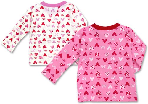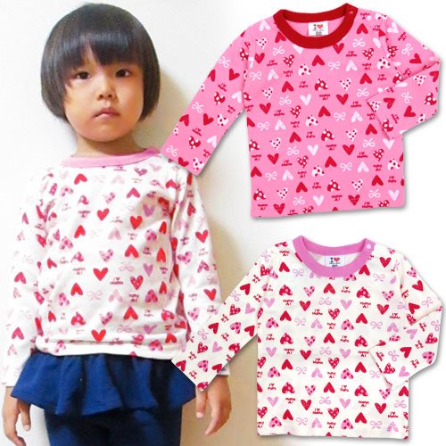 商品説明:アイラブパパ&ママのパパママロゴとハートの総柄が可愛い長そでTシャツです。保湿性・伸縮性に優れたスムス素材使用 左肩のスナップで着脱もラクラク さまざまなパターンのハートとCUTEなリボン、同じように散らばったパパ・ママロゴがとても愛らしい1枚。ピンクとアイボリーの2色展開