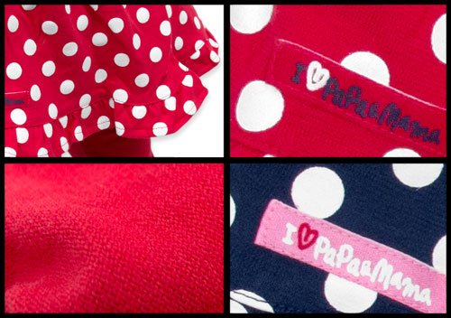 超人気アイラブパパ&ママの可愛くて動きやすい水玉柄スカッツです 汗を吸収しやすく、ニット生地では定番の天竺使用 ゴム入りウエストで着脱ラクラク。スカート部分の右裾にはアイラブタグ付きで、こっそり大好きパパ&ママアピール ふんわり広がる水玉柄スカート部分と、無地のスパッツ部分の組み合わせは抜群の可愛さ。お色はレッド、ネイビーの2色展開です。 サイズ80cm/90cm/95cm