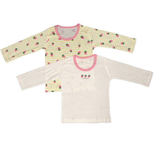 カラー : ホワイト-ホワイトイエローボーダ / ガールズベビー綿100%長袖シャツ2枚組 / ・ 丸首長袖肌着シャツ / ・ 衿ぐりは、パイピング加工 / ・ ボーダー柄いちごドット柄・無地で胸元にイチゴのプリント入のお得な2枚組セット / ・ 綿100%の生地が赤ちゃんのお肌を優しく包みます♪ / 綿100%