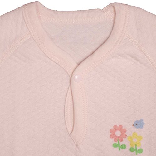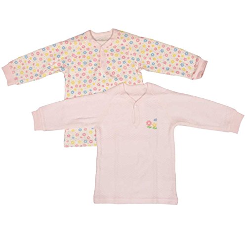 カラー : ピンク-クリーム / ガールズベビー綿100%長袖シャツ2枚組 / ・ 暖かくやわらかな素材(中綿入りキルティング素材) / ・ 丸首長袖肌着シャツ / ・ 衿ぐりは、パイピング加工 / ・ 袖口は、リブ素材 / ・ 花総柄・無地で胸元に花のプリント入りのお得な2枚組セット / ・ 綿100%の生地が赤ちゃんのお肌を優しく包みます♪(本体の中綿にポリエステル、リブ部分にポリウレタン素材が使用されていますので、素材をご確認ください) / 本体(表・裏) : 綿100% / 本体(中綿) : ポリエステル 100% / バインダー部分 : 綿 100% / リブ部分 : 綿 95%、ポリウレタン 5%
