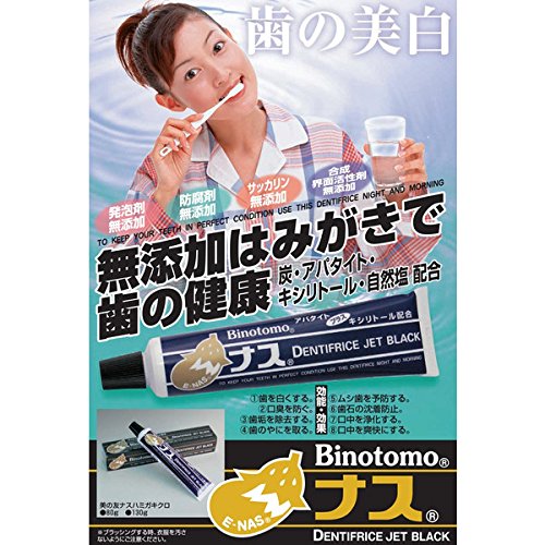 昔から歯と歯ぐきの腫れ、出血、虫歯予防に効果効能のあるとされた、なすの黒焼きを配合しています。アパタイト、キシリトールを新配合しました。粉状タイプです。【特長】・民間療法薬として、永い歴史のある「ナスの黒焼き」を配合。・現代のニーズに合うように使い易いはみがき粉としました。【使用方法】・使用量に応じてはぶらしにつけて、丁寧にはみがきしてください。【成分】水、海塩、グリセリン、炭酸Ca、カオリン、ナスの黒焼き、炭、シリカ、セルロースガム、ヒドロキシアパタイト、キシリトール、メントール、香料