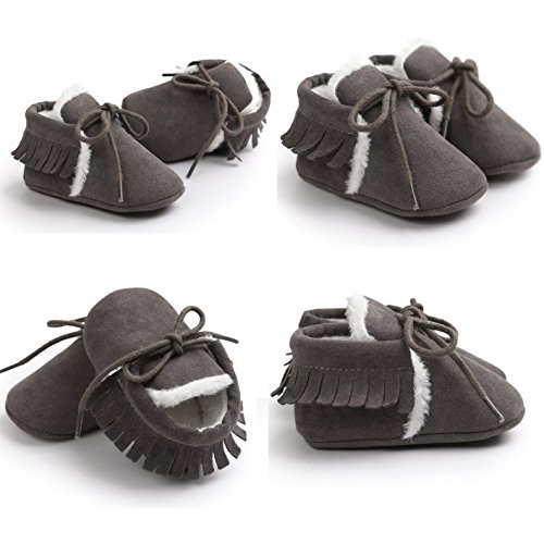 ベビー乳児レースアップスニーカーファー裏地ゴム底Fauxレザー子雪ブーツ カラー: グレー