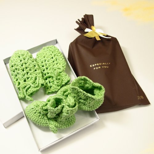 赤ちゃん用鈎針編みミトン&ブーティセット NO.HYS-001 (グリーン)