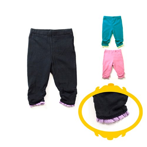 裾ギャザーがくしゅくしゅ、可愛い7分丈パンツ TZPT002 ベビー ベービー 女の子 お土産 ご出産祝い お誕生日 プレゼント キッズ パンツ 7分丈 裾レース ウエストゴム ストレッチ素材 身長80/90/100/110/120/130/140/150cm (150, 99ブラック)