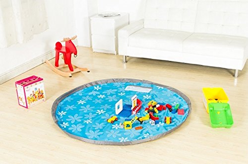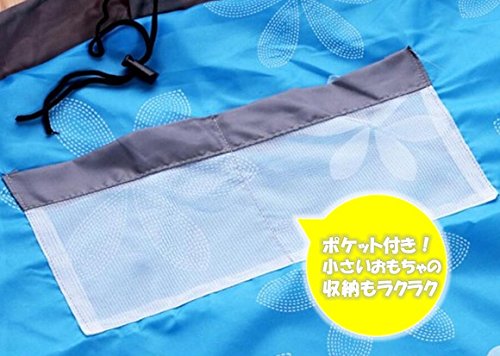 おもちゃ 片付け 収納袋 子供 プレイマット 直径150mm (花柄 ブルー) お手入れ用 タオル付き