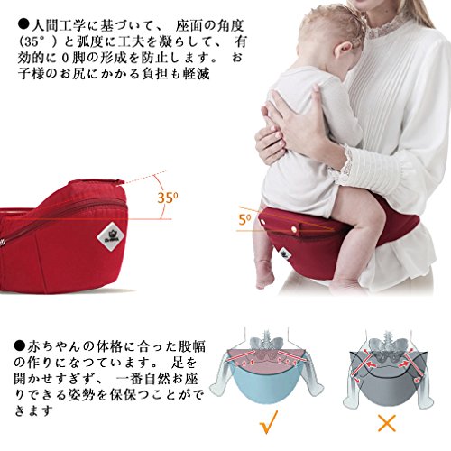 kingrol 抱っこ紐 ベビーアムール ヒップシート 抱っこ ウエスト 抱っこひも ウエストキャリー 赤ちゃん (3ヶ月〜3歳まで) 子供 抱っこ ウエスト 腰ベルト ウエストポーチ(レッド)