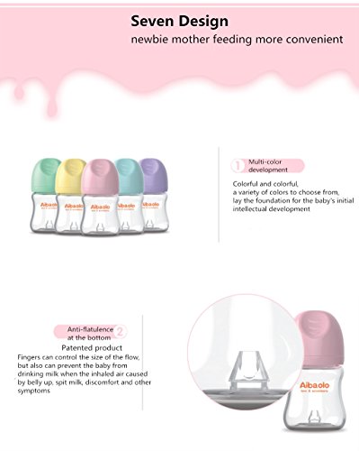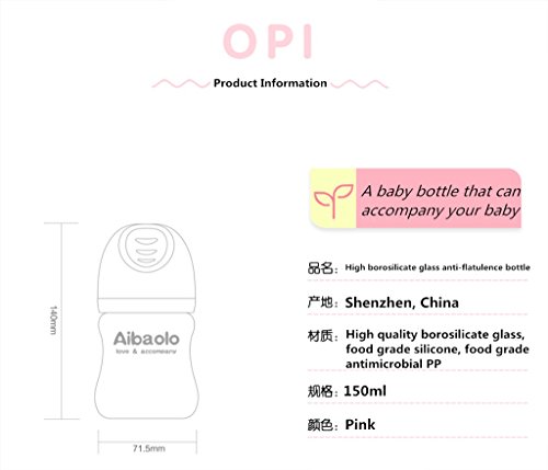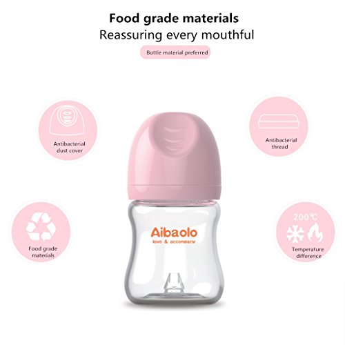 Aibaolo 新生児の哺乳瓶 口径が広いガラス瓶 新型の膨れと爆発を防ぐ抗菌の赤ちゃん乳瓶150ml