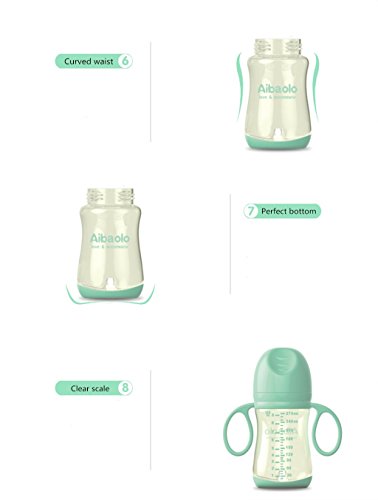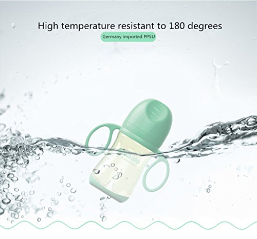 Fytoo Aibaoluo抗菌抗鼓腸PPSU口径が広い哺乳瓶、ハンドルを付き赤ちゃん乳瓶270ml (緑)