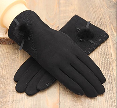 JJdo レディース暖かく手袋 防水ピリングがない ハンドウォーマー 指先スマートフォン対応 シンプルなデザイン刺繍 紫 ピンク 黒い ブラウン (黒い-ボール)