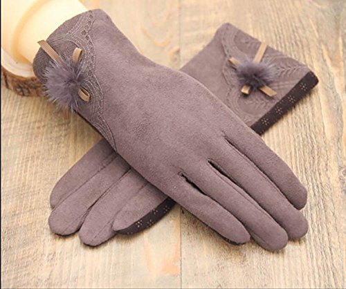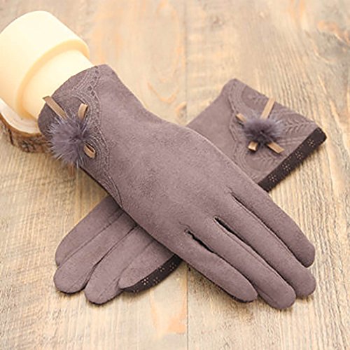 JJdo レディース暖かく手袋 防水ピリングがない ハンドウォーマー 指先スマートフォン対応 シンプルなデザイン刺繍 紫 ピンク 黒い ブラウン (ブラウン-ボール)
