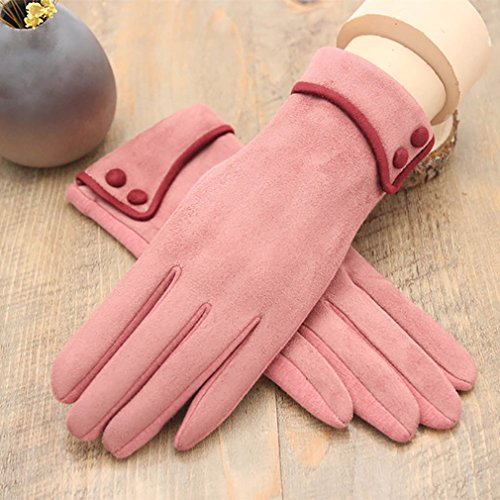 JJdo レディース暖かく手袋 防水ピリングがない ハンドウォーマー 指先スマートフォン対応 シンプルなデザイン刺繍 紫 ピンク 黒い ブラウン (ボタン-ピンク)