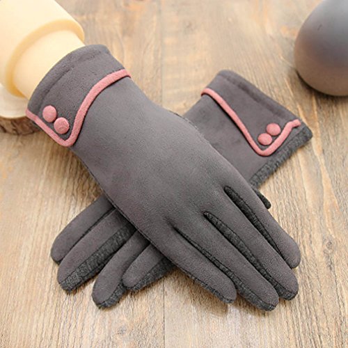 JJdo レディース暖かく手袋 防水ピリングがない ハンドウォーマー 指先スマートフォン対応 シンプルなデザイン刺繍 紫 ピンク 黒い ブラウン (ボタン-グレイ)