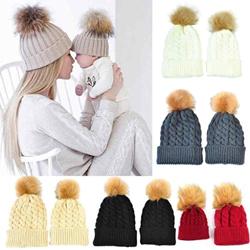 歌を愛する ママと赤ちゃんのニット暖かい帽子をキープ ニット 帽子 (グレー)