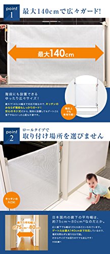 種類:セーフティゲート(ロールタイプ) メーカー:DEMBY デンビー サイズ 直径:5.5cm 高さ88cm 取付幅:最大140cm (140cm以内に設置してください) 対象年齢:6ヶ月~24ヶ月頃まで ご注意 :本製品はネジを使用して設置します。 ※設置面にネジあとが残ります。 ★取り付け可能な場所: 間口が約140cmまでの場所で、凸凹がない垂直の壁面 ネジで固定できる丈夫な壁や柱 ※丈夫でない箇所に取付けると、壁面や柱が破損するおそれがあります。 ★設置危険場所: 窓のサッシへの取付け・家具や建具への取付け・コンロ・暖房器具、下記の近く、屋外は危険です。 その他:ヨーロッパ安全基準 EN1930:2011準拠 生産国:中国