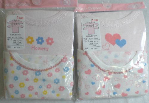 ベビー 女児 長袖 丸首 シャツ 2枚 身長90cm 綿100% 柄おまかせ 福袋