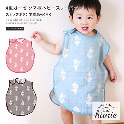 hiorie(ヒオリエ) 日本製 4重ガーゼ ベビースリーパー クマ柄 ピンク 赤ちゃん スリーパー 出産祝い 新生児~2歳