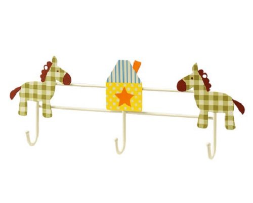 洋服、帽子掛けに 丸和貿易 プリントモチーフ トリプルフック ギンガムホース 400519604