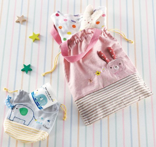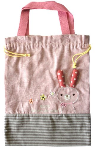 丸和貿易 【ハンドメイドタイプの体操服袋】 アロンアロン 体操着入れ巾着(手提げ付) ウサギ