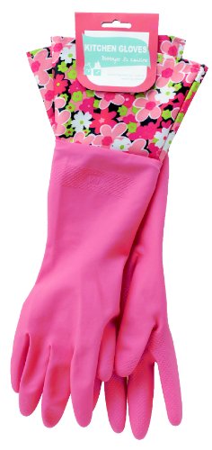 丸和貿易 ゴム手袋 キッチングローブ フラワー ピンク