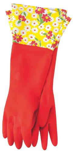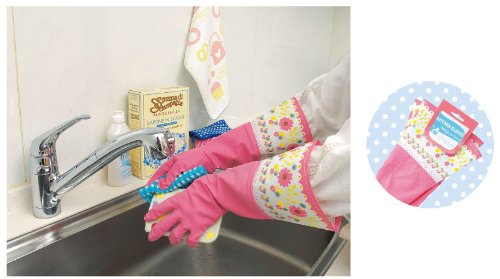丸和貿易 ゴム手袋 キッチングローブ レッドフラワー