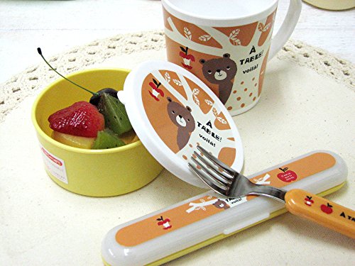 ケースの中にはオレンジ色のフォーク! くまさんとりんごのイラスト入りでフォークもかわいい☆