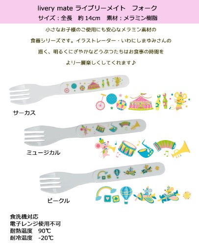 丈夫で軽くて使いやすい、お子様でも安心のメラミン製フォークです。 イラストレーターいわにしまゆみさんのデザインによる、レトロで可愛らしいアニマル達が楽しそうなイラストが素敵です。 スプーンとセットになっているカトラリーセットや、プレート、ボウルなどと一緒に使えば楽しいお食事タイムに! シリーズで揃えてお祝いのプレゼントにもおススメです♪ 【商品詳細】 ■素材:メラミン製 ■サイズ:約 14cm ■耐熱温度:-20~90℃ ■備考:食洗機対応。電子レンジのご使用はできません。