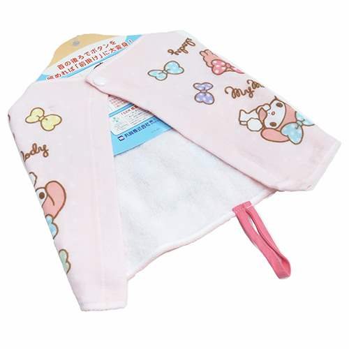 サンリオの人気キャラ【MY MELODY】のベビーグッズが登場!!こちらはおでかけの時にとっても便利な【お出かけタオル】◎表面ガーゼ、裏面無撚糸を使用してるので優しい肌触り◎首の後ろでボタンを留めれば前掛けとして使えます。◎ループ付きだからベビーカーなどに掛けて使えます!!◎抗菌防臭加工済他にもいろんなキャラクターあるので日替わりでいかがですか?■サイズ:約250×470mm