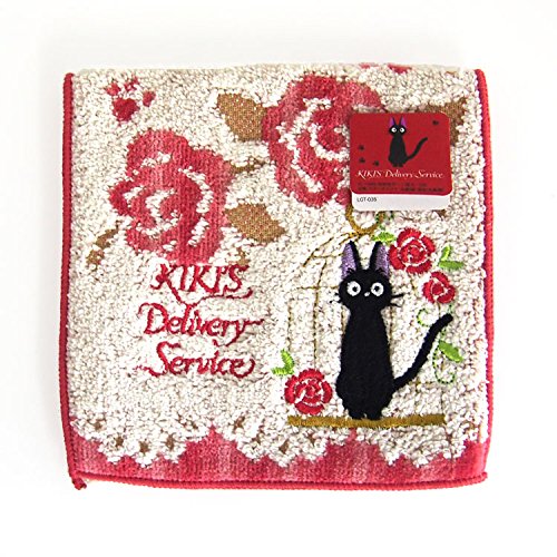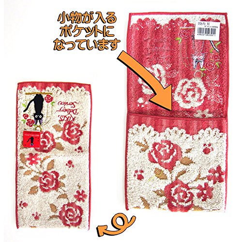 丸眞 魔女の宅急便 「ジジとバラ」 ポケット付きタオル 約12.5×12.5㎝(折り畳み時)