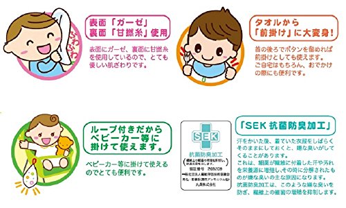 - 仕様:表 ガーゼ・裏 甘撚糸、ループ付、スナップボタン付、抗菌防臭加工